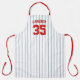 Baseball jersey stripes style apron with colours that are fully customisable. Click customise and change the background colour. To change the stripes colour, click customise, select ThinStripes2 layer and change the fill colour. You can even change the strap colour (accessible on the product page itself) to whatever colour you wish. Perfect gift for the baseball fan.