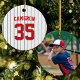 Baseball jersey stripes style ornament with colours that are fully customisable on the front and you can add your photo on the back. On the front, to change the background colour, click customise and change the background colour and to change the stripes colour, click customise, select "ThinStripes1" layer and change the fill colour. Perfect for the baseball fan this holiday season.