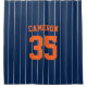 Baseball jersey stripes style shower curtain with colours that are fully customisable. Click customise and change the background colour. To change the stripes colour, click customise, select ThinStripes1 layer and change the fill colour. Perfect gift for the baseball fan.
