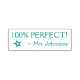 This motivating rubber stamp design features the message "100% PERFECT!" and a customised teacher's name. It also features a decorative star shape. It could be used by a teacher or educator when grading student work, to acknowledge that a student has done an exceptional job.
