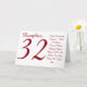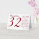 A white background featuring red text, on this fun, 32nd birthday greeting for a daughter. My Funny Mind Greetings.