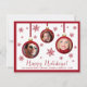 Fun 3 Photo Collage Red Bauble Ornament Holiday Card