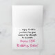 This card is great fun and good quality. I loved the humour inside and on the back. There is the opportunity to change the orientation of this card from landscape to portrait, which I did. It is relatively straightforward to amend the typeface to fit the new orientation. It was well packaged with no plastic. The printing on this card is excellent.