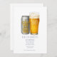 Fun 80th birthday invitation featuring a beer can and pint glass with the phrase "A Cold One for the Old One." Customisable text includes the guest of honour's name, party date, location, and RSVP details. Perfect for a man's 80th birthday celebration.