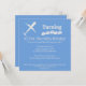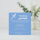 The artwork features an aeroplane art along with customisable template fields for personalisation of a kid's birthday invite - all presented on a blue background. The design allows for customisation of the background colour - if desired.