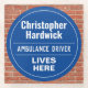 Fun Commemorative Style Wall Plaque Gift in the form of a Glass Coaster for an Ambulance Driver. Blue and white plaque. Edit the design to change the wording to suit the gift recipient.