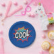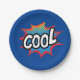 A cool, fun, and colourful paper plate, this design features "Cool" in fun superhero text box on a blue background. Order yours today!