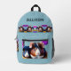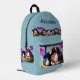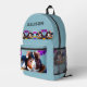This backpack features two fun and cute guinea pigs in a basket, framed by flowers. Custom colour and text! Fun and cute back to school gift for any child!
