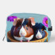This Toiletry Bag features two fun and cute guinea pigs in a basket, framed by flowers. Fun and cute, personalised toiletry bag for any child! Cute gift idea.
