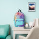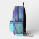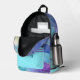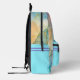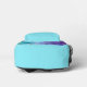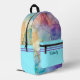 This custom all over print backpack is so much fun with the beautiful shades of blue, green, purple and peach! The side and front pockets are done in a coordinating turquoise blue with a double purple stripe at the top of them. Personalise the backpack with your name on the front pocket in a dark turquoise teal colour. The font and font colour are customisable should you want them to be a different style.