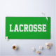 This sporty bold design features white athletic LACROSSE text against bright green background. The colors and text in this design can be personalized.