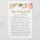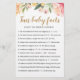 Purchase this game and enjoy high quality flowers Fun Baby Facts card for your event! Baby Shower Activities! ANSWERS: 1.- 8, 2.- 74, 3. - 69, 4. - 3, 5. - 7.5, 6. -20, 7. - kneecaps, 8. - 300, 9. - 6, 10. - 3000, 11. - 350, 12. - 16