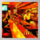 Abstract Ai art depicting a bartender and patrons of a bar or club having fun.