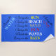 Fun summer themed beach sayings on ocean blue colour background. With the wording, Bring the sun, beach, sand, fun, waves, water, love and easy on the rays. Colourful typography in yellow, white, sand, red, yellow, black. To Edit text watch the waves to ride the waves click Edit this design and click on text box. Original Design © TamiraZDesigns.