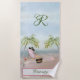 Fun Beach Scene Glam Palm Tree Monogram Name Towel