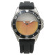 Has heft and feel of expensive stainless steel quartz wrist watches. Solid construction and good looks. Although it had a really top quality rubber strap, I substituted a stainless steel "Shark" style mesh strap, which I think is the most comfortable strap available. Perfect. True colors of original image. Clear, crisp image precisely aligned and spaced.