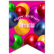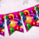 Get ready to host the perfect party with this great personalised bunting. A rainbow of floating balloons on a bright pink background make this a great choice for a fun filled event.