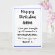 This card is great fun and good quality. I loved the humour inside and on the back. There is the opportunity to change the orientation of this card from landscape to portrait, which I did. It is relatively straightforward to amend the typeface to fit the new orientation. It was well packaged with no plastic. The printing on this card is excellent.