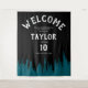 Join the Adventure with Our Forest-Themed Welcome Photo Backdrop! Step into a world of lush greenery and celebrate amidst the charm of nature with our stunning forest-themed photo backdrop. Featuring deep navy blue tones and elegant forest tree silhouettes at the base, this backdrop captures the beauty of the great outdoors. The sleek black background and bold white typography create a striking contrast, adding a rustic yet modern touch to any event. Personalise the customisable text to make your celebration truly unique! The playful font hints at the woodland adventure awaiting your guests. Perfect for outdoor birthdays, baby showers, or any nature-inspired event, this backdrop promises high-flying fun and unforgettable moments. Don't miss the chance to create memories beneath the treetops!