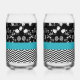 Fun Black and White Two-Print Set w/Aqua Stripe Can Glass