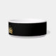 This is a heavy, durable bowl decorated with Tibbies of many colors, the perfect size for hungry/thirsty Tibs. The design is interesting and printing clear.