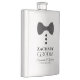 This fun flask is designed as a gift for the groom. It features an image of a black bow tie with three buttons, resembling a tuxedo. The text reads "Groom" and has a place for his name, the couple's names and wedding date. Great memento of your special day.