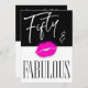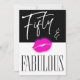 Fun Black White Fifty Fabulous Pink Lips Birthday Invitation