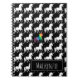 Fun Black and White Unicorn Pattern Rainbow Personalised Notebook. Stylish black and white unicorn pattern covers the front of this fun notebook. One bright and colourful rainbow unicorn in watercolor brushstroke stands out in the centre. Red, orange, yellow, green, blue, and purple unicorn adds a splash of fun to the monochrome design. Personalise with name in the bottom corner or delete to remove name and label. Name is centred on a black and white background for easier reading. Gorgeous, modern and stylish unicorn designs.