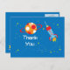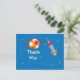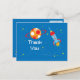 This boy's birthday party thank you postcard has a space rocket theme. There is a rocket flying in outerspace with a moon and stars floating all around. You can easily customise this with your thank you message on the back. Graphics by Blackleaf Studios at MyGrafico