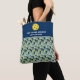Super cute double-sided tote bag for your pickleball paddle and gear. Design features a yellow pickleball, two lines of custom text set above a sporty blue, green yellow abstract arrow pattern. Get matching totes for your club, team or pickleball trip . . . Makes a nice gift for the pickleball player in your life.