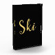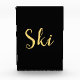 Merry modern holidays! This vibrant colour-drenched design features beautiful centred "Ski" written in festive warm yellow script across the length of the design against a deep rich black background.