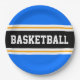 Fun Bright Blue Black Yellow BASKETBALL Stripes Paper Plate
