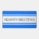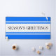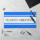 This classy, sporty design features a white centre stripe with floating white pinstripes. The outermost edge stripes are bright blue, and the festive "Season's Greetings" text can be personalised.