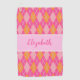 This pretty ladies personalised golf towel features orange and pink argyle with a customisable name in white text. You can edit the message to say something else if you'd like to change the message or add a last name. It's a stylish, cute gift for a golfer. It's a useful present for your mum, sister, grandma, or any lady whose hobby is playing golf. Women monogram golf towels.