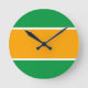 Fun Bright Wide Golden Orange White Green Stripes Round Clock