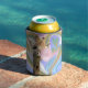 Fun Bubblegum Blowing Giraffe Liquid Swirl Blue Can Cooler
