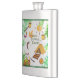 The product is a good size and came exactly as it was pictured.  The lid is not attached to the flask, which could be dangerous on drunken nights... The print came out surprisingly well and looks very sharp.  Would definitely recommend.