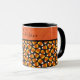 Fun pattern of candy corns with an orange swirly watercolor band at the top that is personalized with your name. A thin black trim separates the two sections.