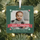 Fun and playful candy theme baby's first Christmas photo keepsake ornament. Baby's first Christmas keepsake ornament can be customized with the baby's name, the year, and one photo on the front and one on the back. Fun candy cane frame with red ribbon and spiral red and green permit candy elements. Artwork by Moodthology Papery.