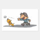 Fun Cartoon Boy and Dog Playing Fetch Rectangular Sticker