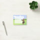 A fun cartoon design featuring a golfer in vintage attire standing in the rough looking towards the green and flag. The golfer is carrying a golf bag with golf clubs. unique golf gift for the keen golfer or golf fan