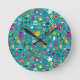 fun cartoon pattern teal round clock