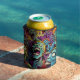Multiple cartoon-like zombie faces, each with exaggerated expressions, cover the flask’s surface. These zombies exhibit various skin tones—green, purple, and blue—and sport wide eyes and open mouths, revealing sharp teeth. Some appear to be screaming, while others convey shock or horror. The intricate design creates a sense of chaos and intensity, making it appealing for fans of horror-themed artwork.