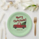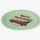 Fun Christmas party plates with red truck and tree . Old vintage Chevy truck hauling a Christmas tree. Fun design for the holidays. Fun for kids and adults. Personalize with your own text and colors.