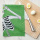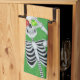Fun Christmas Skeleton Ornament Eyes on Green Tea Towel
