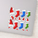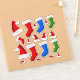 This Christmas themed design features a variety of Christmas stockings and Christmas Santa's hats of various sizes.