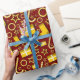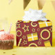 This Christmas pattern has a bunch of fun gold stuff like stockings, candy canes, presents, stars and hoops all on a maroon background that will add to the atmosphere and colour of the season and make you gift giving even more special. Wrap you gifts in your own unique wrapping paper that is all your own and one of a kind.