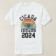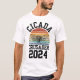 Fun CICADA CRUSADER 2024 T-Shirt with CUSTOMIZABLE TEXT, featuring bold typography, vintage retro sunset and circada outline to celebrate the circada double emergence invasion on the East Coast of the United States in summer 2024. The bold typography says CICADA CRUSADER 2024. The 2024 is CUSTOMIZABLE so you can update it to 2028 or any other text. Get ready for the great cicada emergence of Broods XIII and XIX. Ideal for aspiring and future entomologists everywhere!