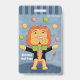 Fun blue student hall pass featuring a circus juggler lion on the front and a pattern on the back . Perfect for elementary school . It can be personalised with the teacher's name and type of pass (library , office , bathroom , etc) . Choose the type of attachment you want (none , metal clip -as seen here - , or lanyard ) .