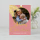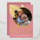 Contemporary classic Christmas holiday season greeting card with white coloured pine tree needles wreath leaves pattern on a classy blush pink background, with real gold foil Merry Christmas wish text. With option and room to customise the text, family name and year date, and add a personal photo of your choice on the front, and a customisable season greeting message on the backside of the card.